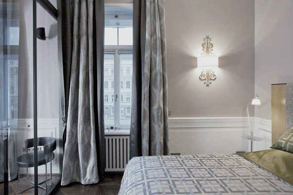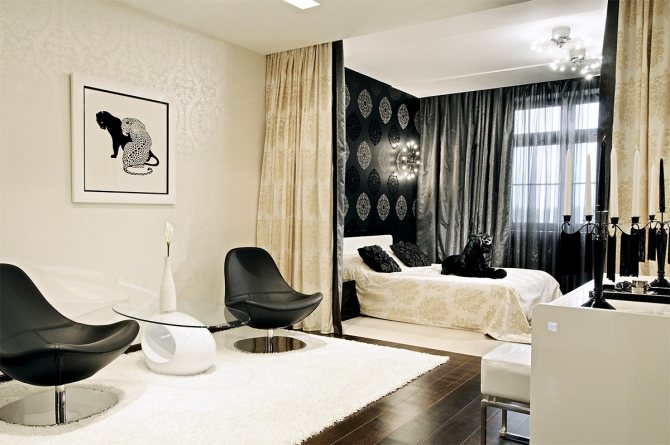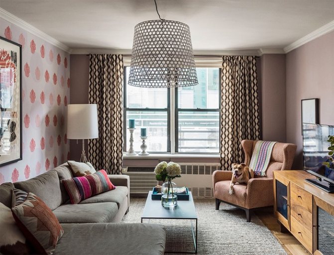 Souvent, dans les appartements, il y a aussi un petit dessin sur les rideaux. Il a fière allure en soi, mais lorsqu'il est livré avec un papier peint imprimé et de nombreuses étagères ouvertes, il n'a pas de goût. Il est préférable de choisir des textiles avec un ornement pour décorer une pièce neutre - de cette façon, ils auront l'air avantageux.