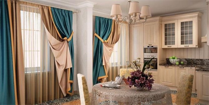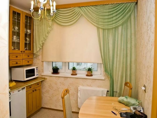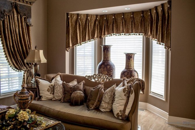 Astuce: pour que lorsque les rideaux sont ouverts, le fragment du mur au-dessus de la fenêtre ne semble pas vide, couvrez-le avec un lambrequin.