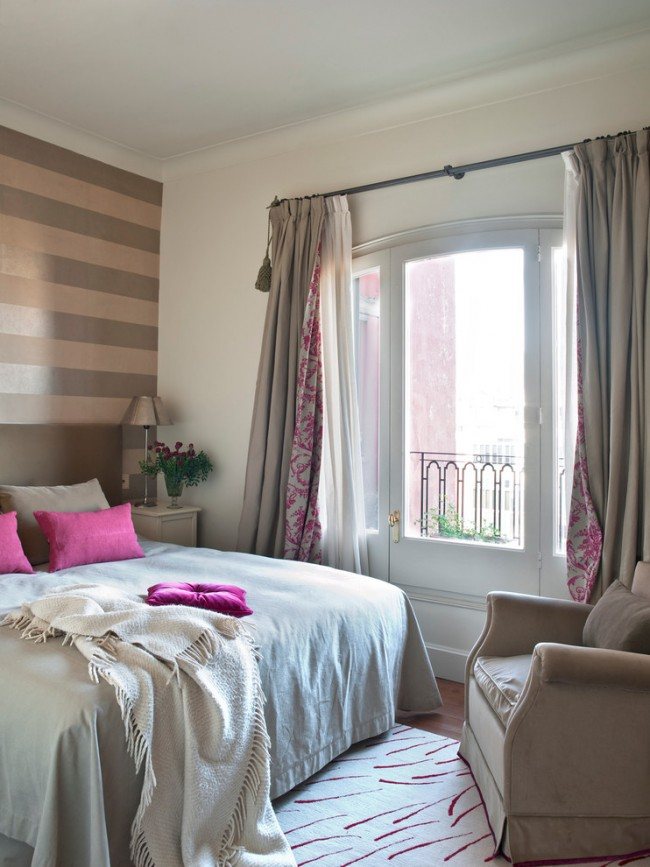 Conseils! pour le papier peint uni ou la peinture sur les murs, choisissez des rideaux avec un ornement, et pour les murs lumineux et riches avec un motif, il est préférable de prendre des rideaux unis.
