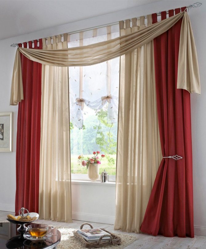 Conseils! Vous pouvez agrandir la composition de la fenêtre en utilisant un ornement horizontal sur les rideaux, mais vous devez l'utiliser avec précaution - cette technique ne convient pas aux pièces à plafonds bas.
