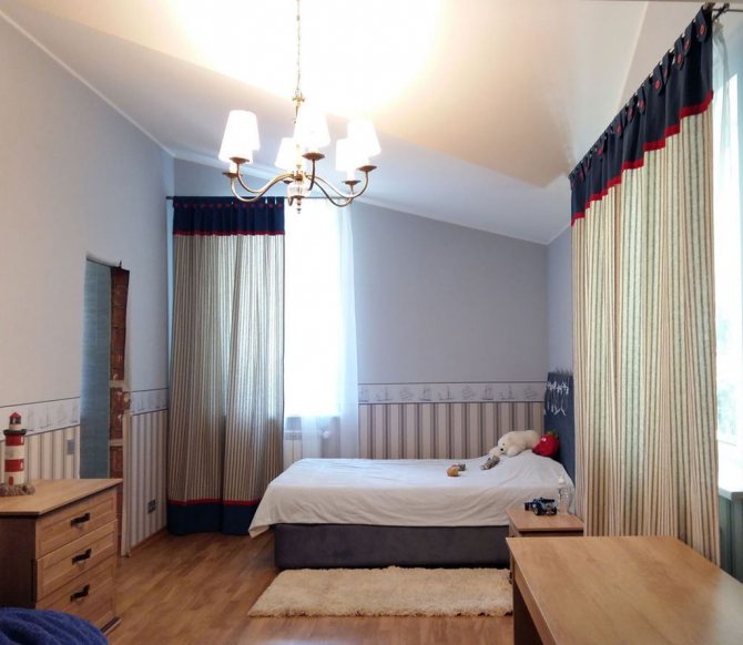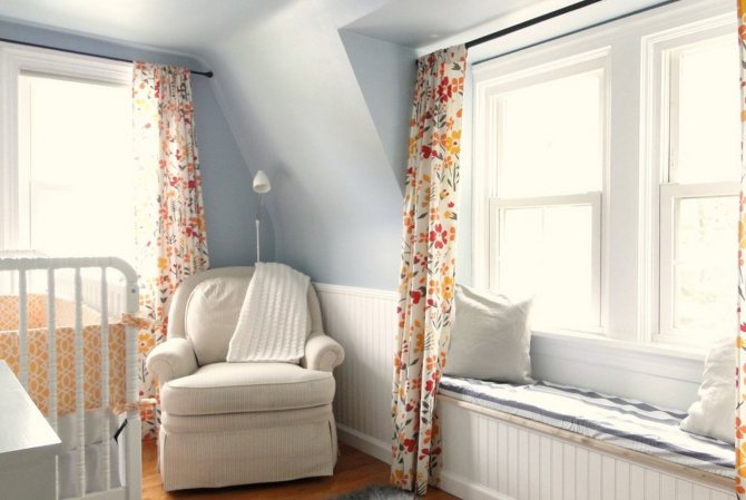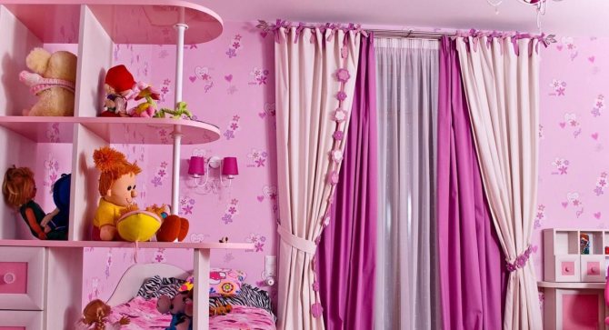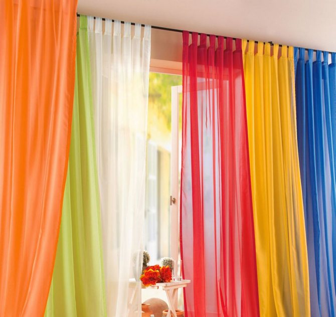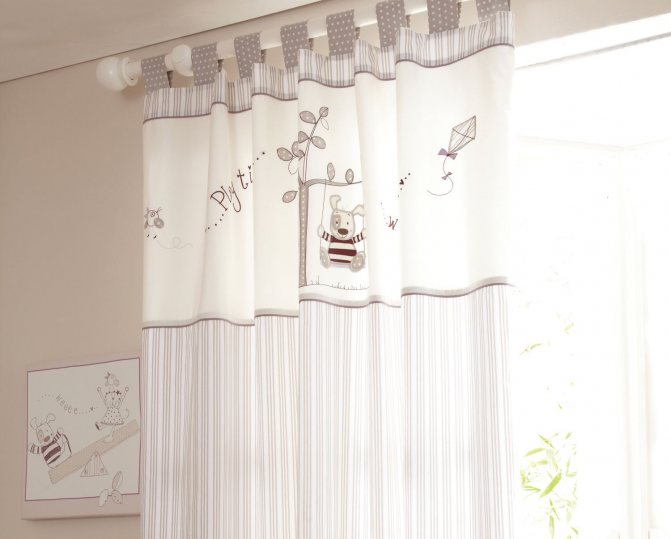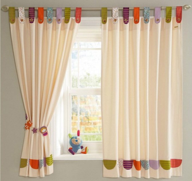 Les rideaux à charnières sont une excellente solution pour la chambre d'un enfant. Ils sont silencieux lorsqu'ils sont utilisés, ont des possibilités de décoration infinies: nœuds, cordes, boutons.