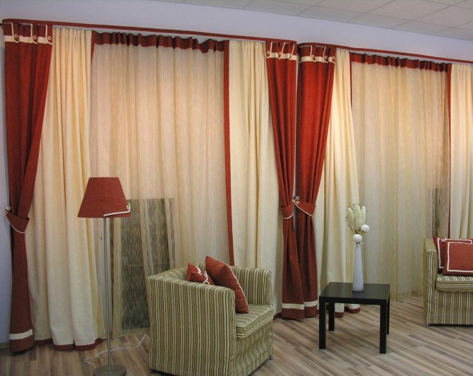 - Bureaux et établissements commerciaux - des rideaux de styles stricts de nuances neutres à partir de tissus pratiques mixtes sont utilisés. Convient bien: rideaux blancs, verts, gris, bruns et fusion.