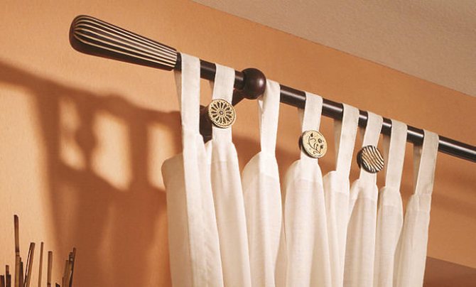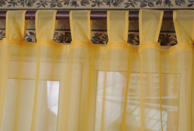 Le tulle est souvent attaché avec des boucles, les rideaux sont placés moins souvent sur la corniche par cette méthode. Pour les matériaux lourds, les boucles de tissu conviennent plus souvent, car elles sont plus solides, plus épaisses et plus puissantes.De plus, elles peuvent être placées sur le rideau avec une fréquence plus élevée, ce qui ne fera qu'ajouter à la résistance de la structure. Pour les tulles légers, vous pouvez faire des boucles de fil. Cependant, même ces fils devraient être encore renforcés. Les rideaux sont rarement fixés avec des boucles, cependant, pour les tissus translucides légers, cette option est parfois acceptable.
