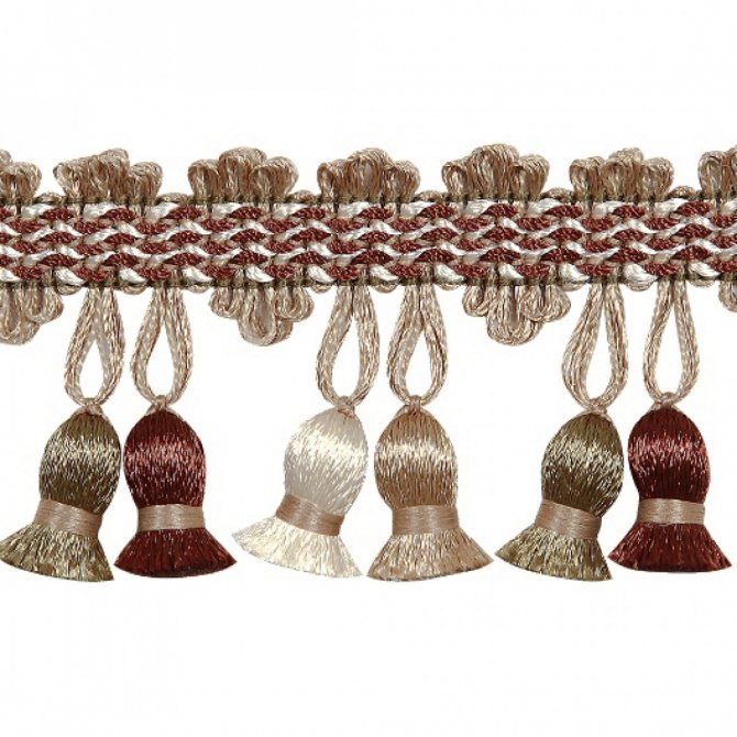 Création de boucles à partir de fils entrelacés, elles sont enfilées sur les corniches elles-mêmes ou accrochées à des crochets.