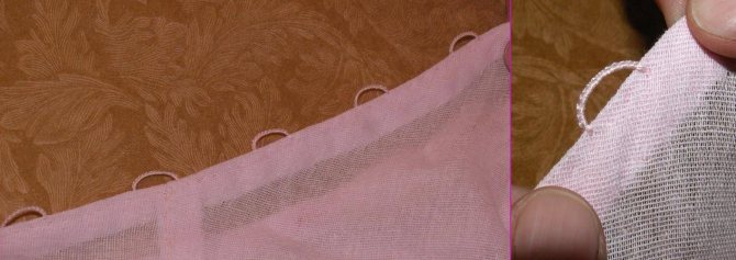 Ce n'est qu'après cela que la boucle est attachée au rideau avec l'extrémité opposée de l'élément de ferrures cousu.Ensuite, la deuxième partie du Velcro est cousue ou une boutonnière est réalisée, comme décrit ci-dessus, au moyen de fils et d'un crochet.