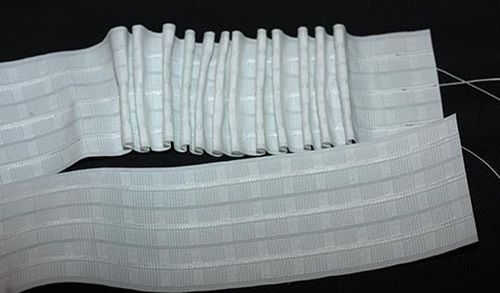 Une toile plus lisse sur une ouverture de fenêtre est réalisée en cousant sur un grand nombre de boucles identiques. Il est difficile de donner des chiffres précis, mais il faut néanmoins tenir compte de la longueur totale de la matière, de sa gravité et de la tendance à former des plis.