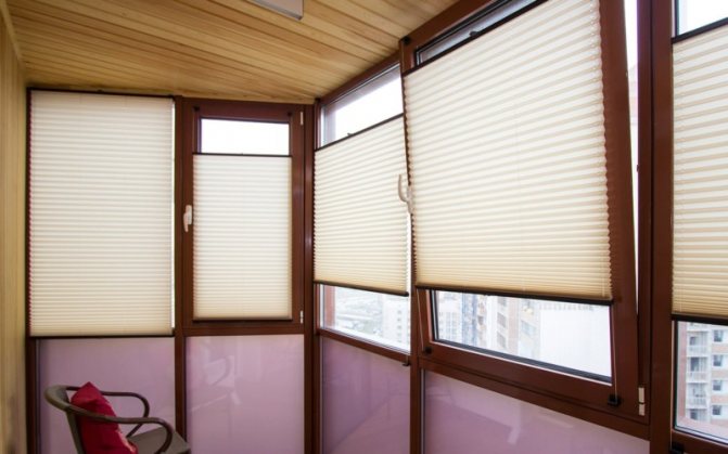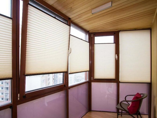 Lorsque la loggia fait face au côté ensoleillé, la meilleure solution pour cela sera des produits en tissu avec un revêtement métallisé réfléchissant. Grâce à eux, une température de l'air confortable sera maintenue à la fois sur le balcon et dans la pièce.