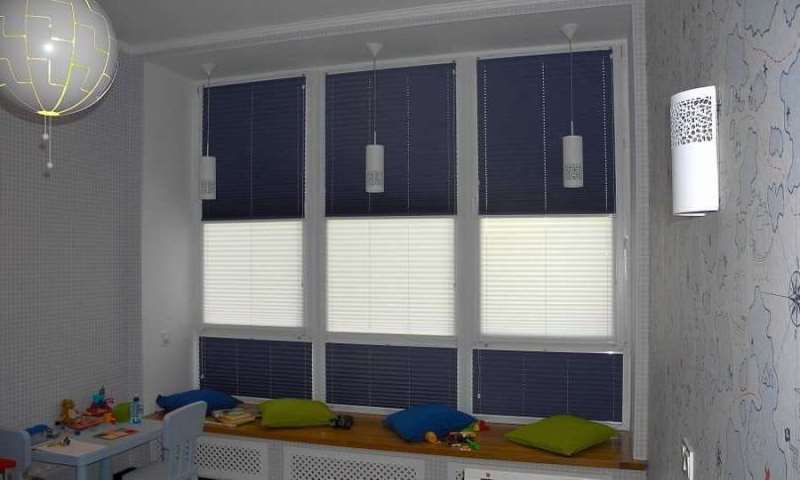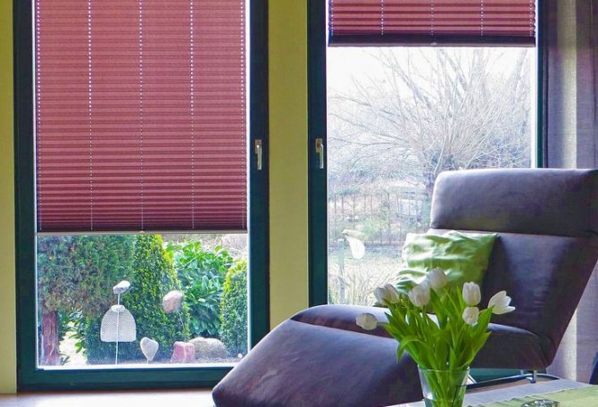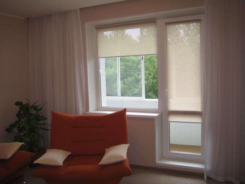 Les rideaux plissés sur les fenêtres en plastique se marient parfaitement avec les rideaux classiques, ils jouent le rôle de filtres à lumière. Ces deux types de décorations de fenêtres semblent très bien en tandem et se complètent.