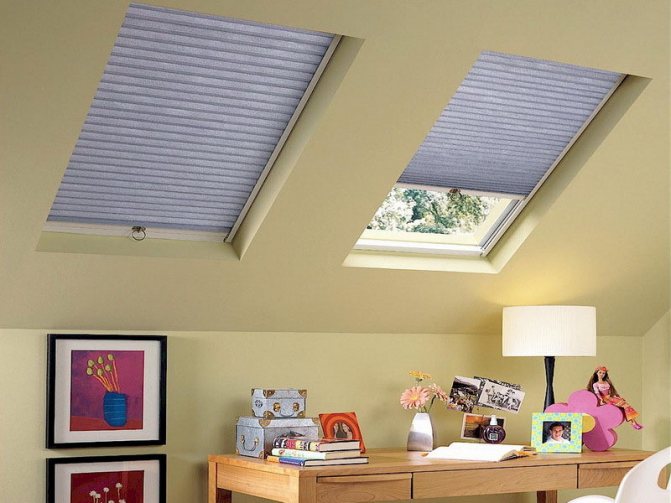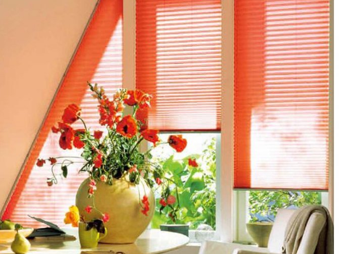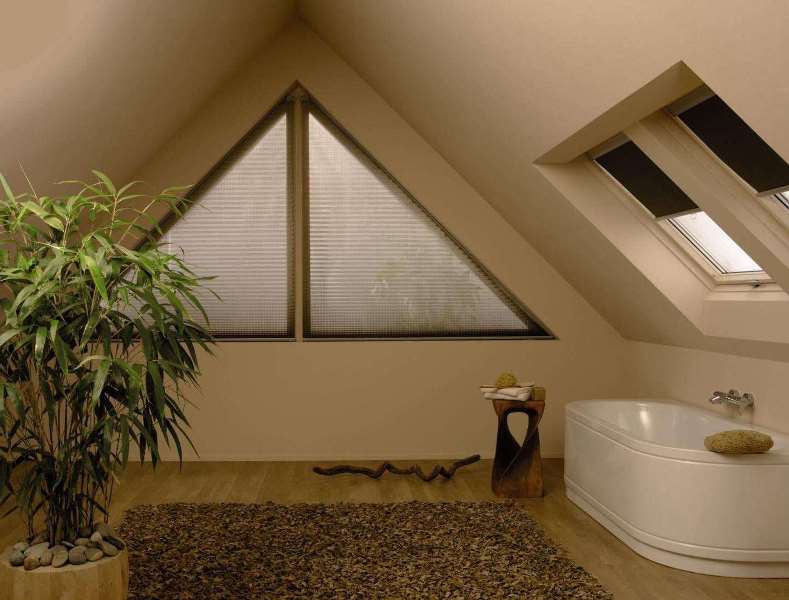 Les fenêtres du grenier sont le plus souvent de forme non standard, il est donc impossible d'y accrocher des rideaux classiques. Les stores plissés peuvent être montés sans problème, de plus, ils ne suppriment pas un centimètre d'espace rare.