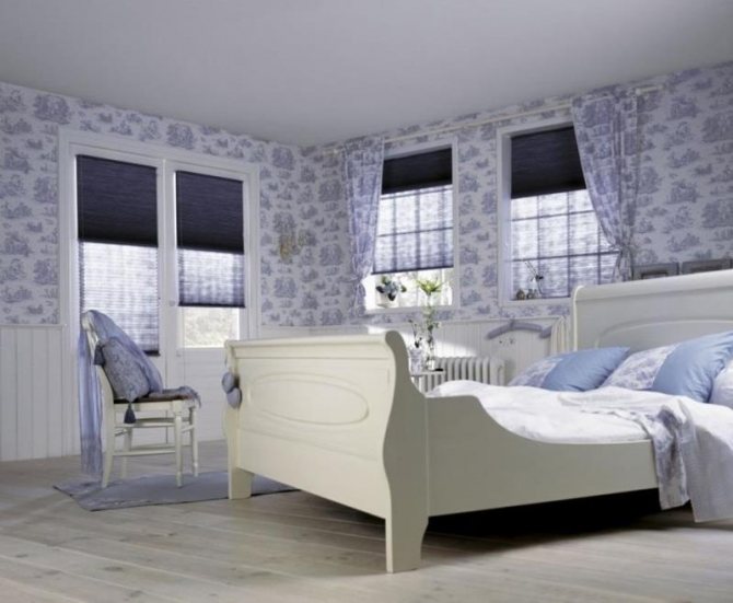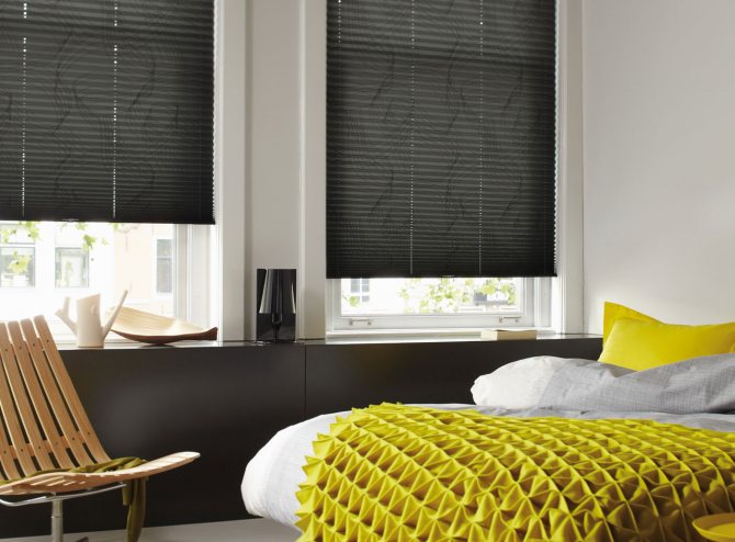 La chambre a besoin périodiquement d'un black-out complet. Les rideaux plissés, surtout s'ils sont en tissu occultant bloquant la lumière, remplissent parfaitement cette fonction. Et si vous choisissez un produit avec un entraînement électrique et une minuterie programmable, vous n'avez même pas besoin de sortir du lit pour relever les toiles après le réveil et laisser entrer la lumière dans la pièce.