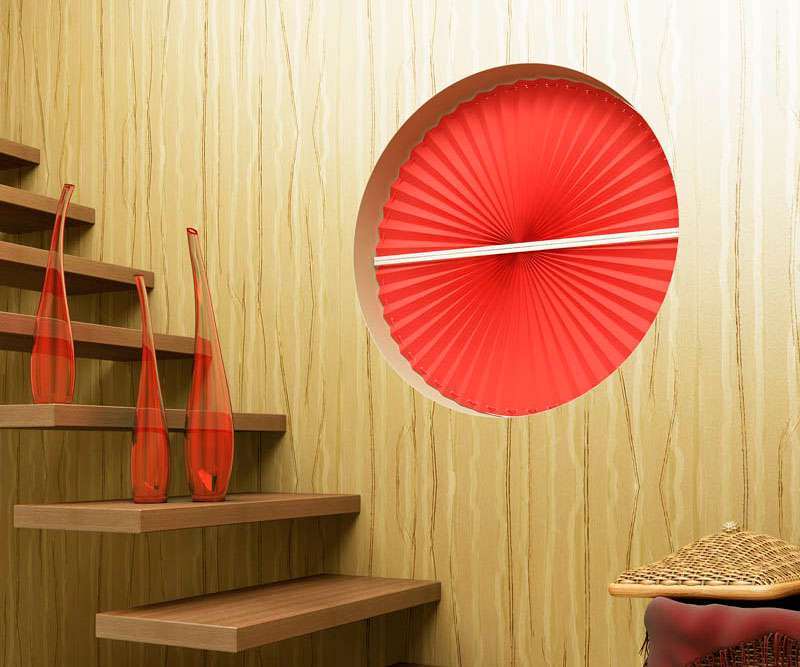 Lorsqu'il est ouvert, un rideau plissé sur une fenêtre peut fermer complètement une fenêtre ou même une porte, et lorsqu'il est fermé, il se rétrécit en une briquette compacte ne dépassant pas 4 à 5 cm d'épaisseur.