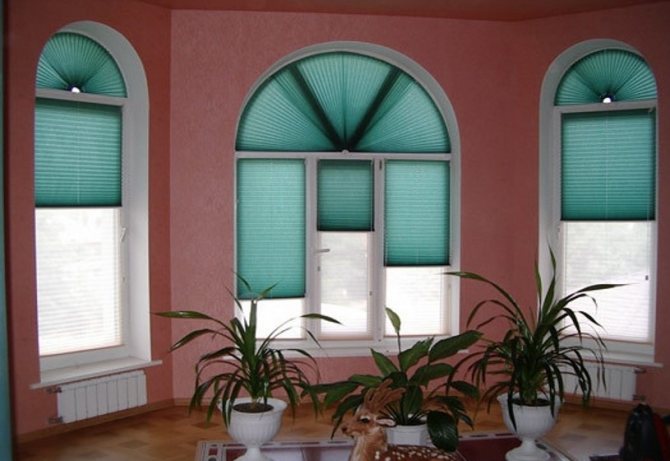 Les rideaux plissés peuvent être utilisés pour décorer une fenêtre de n'importe quelle configuration, sans se cacher, mais en soulignant sa forme non standard. De plus, même montés sur des fenêtres cintrées, ils fonctionneront: s'ouvrent et se ferment. À cet égard, ces rideaux sont uniques en leur genre.