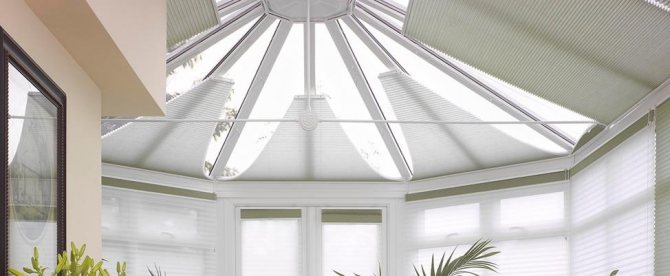 Cette structure leur confère d'excellentes qualités d'isolation thermique: le nid d'abeille emprisonne l'air à l'intérieur de lui-même, créant ainsi une membrane thermoconductrice. Les deux toiles sont reliées le long de lignes de pliage, formant des compartiments symétriques. Si vous regardez de côté, vous pouvez voir que leur forme est en forme de losange. Étant donné que les plis plissés sont au moins le double, ils protègent deux fois plus du soleil et, à la chaleur, ils vous permettent de réduire la température de l'air de plusieurs degrés.