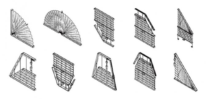 Comme mentionné ci-dessus, la gamme de ces stores uniques est extrêmement large. Ils diffèrent par la forme, le matériau de fabrication, le type de commande, mais le critère principal de leur choix reste les caractéristiques de conception. Considérez toutes les variétés.