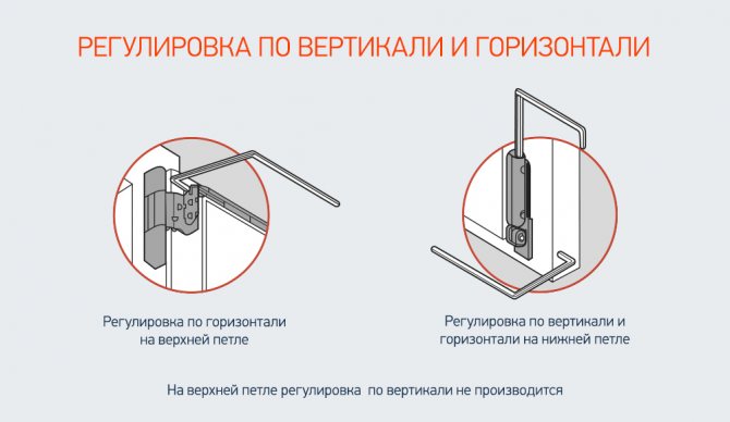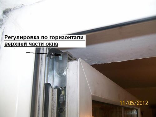 L'option inverse est possible, lorsque l'ouvrant n'est pas fermement pressé contre le cadre dans la partie médiane. Dans ce cas, desserrez les charnières. Sur la photo - vis inférieure latérale. =