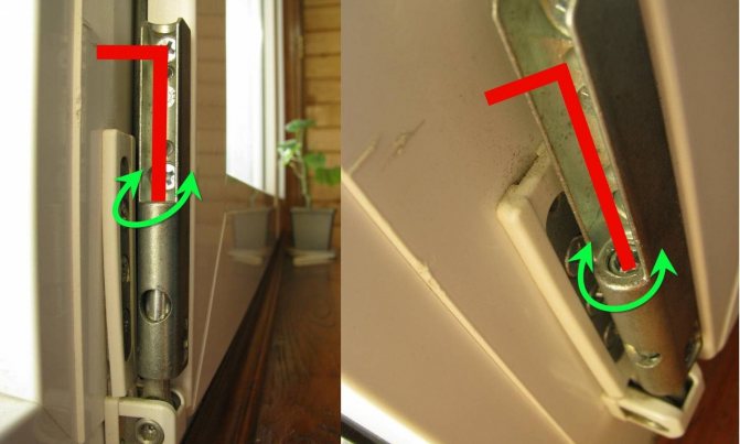 Avec l'apparition de la chaleur, la pression des joints doit être relâchée. Sinon, ils s'useront rapidement. Pour cela, les goupilles sont ajustées sur la porte ouverte. Ils doivent être mis en "mode été" - ovale verticalement, rond avec une marque vers la rue.