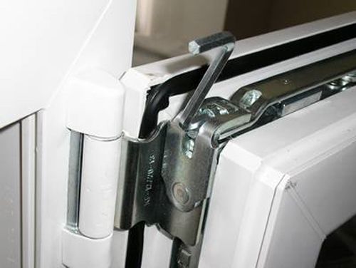 Si la structure s'affaisse, les charnières supérieures doivent d'abord être réparées. Vous devez ouvrir complètement la porte du balcon, puis mettre le châssis en position de pivotement et retirer le capuchon décoratif de l'élément de fixation. Les charnières de chaque porte en métal-plastique sont recouvertes de capuchons sous lesquels se trouvent les vis.