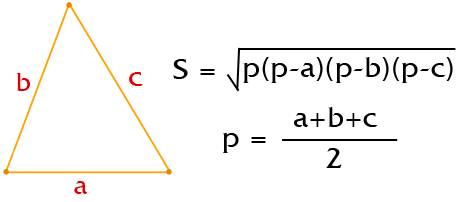 La notation "p" est un demi-périmètre. Par exemple: nous avons un plancher triangulaire dont les côtés sont de 5, 6 et 7 mètres.