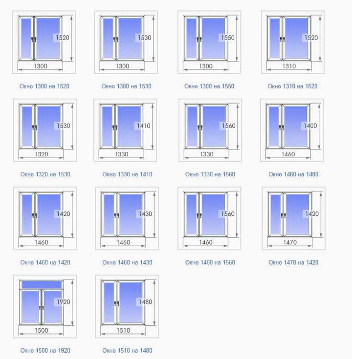 Les tailles les plus courantes de fenêtres en plastique dans les maisons typiques: