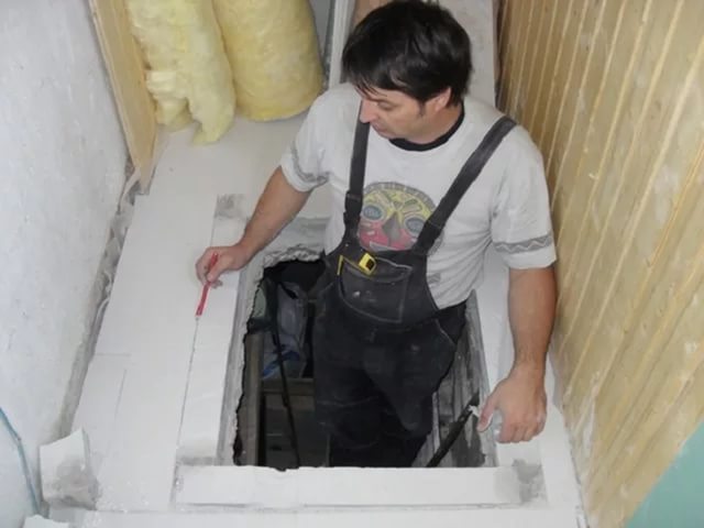 - Le trou dans la trappe est soigneusement doublé et une trappe isolée est installée.