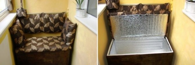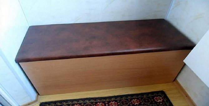 Important! Si vous n'avez aucun doute sur la fiabilité de la conception, le couvercle supérieur de la boîte dans la fabrication d'un conteneur fixe peut être utilisé comme siège pour un canapé de balcon. Pour ce faire, placez un matelas dessus, cousu en fonction de sa taille.