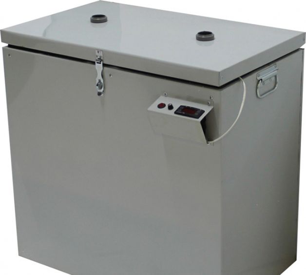 Construction sous la forme d'une boîte métallique durable avec un corps isolé, caractérisée par la stabilité et la présence d'une palette sur des pieds métalliques. Pour la fabrication du corps de l'armoire, de l'acier ordinaire est utilisé, tandis que les boîtes de rangement sont en acier galvanisé ou inoxydable. Le four est équipé d'un thermostat électronique connecté à des éléments chauffants, d'un capteur de température et d'un thermomètre à distance. Tous ces éléments font partie d'un système holistique chargé de maintenir une température constante dans la mini-cave, qui peut être surveillée à l'aide d'un indicateur numérique.