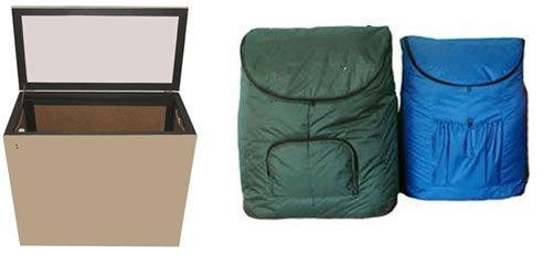 Extérieurement, un thermoconteneur flexible est un sac ou un sac ordinaire, équipé d'une soupape de chargement dans la partie supérieure.Contrairement aux fours, ils se caractérisent par une facilité de transport, car lorsqu'ils sont déchargés, ils peuvent être enroulés et facilement soulevés jusqu'au sol souhaité. Grâce à cela, en été, il n'encombrera pas le balcon. Étant donné que la structure est composée d'un matériau à trois couches résistant à l'humidité et d'une couche d'isolation thermique d'hivernant synthétique, elle peut fonctionner sans à-coups même en cas de panne de courant de deux heures et assurer la sécurité à des températures de -40 à +5 degrés .