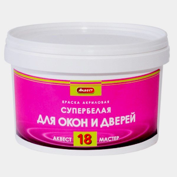 C'est une peinture assez populaire pour les fenêtres en bois. Il a des caractéristiques techniques élevées, le prix du matériau le rend abordable pour les acheteurs. La substance principale est la résine acrylique diluée avec de l'eau plate. La peinture est inodore, bien adaptée aux produits en bois, n'émet pas de substances nocives.