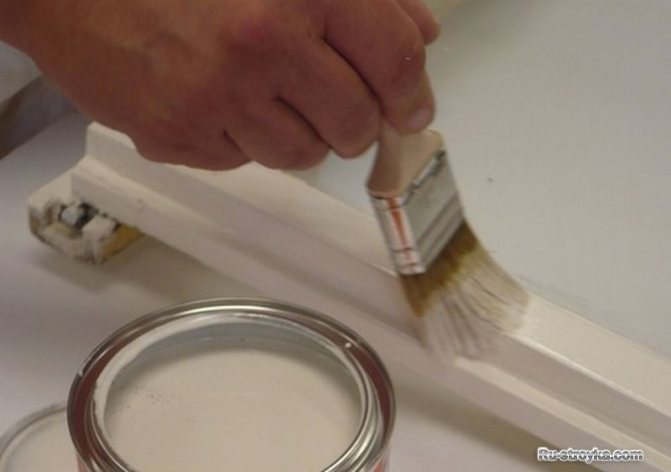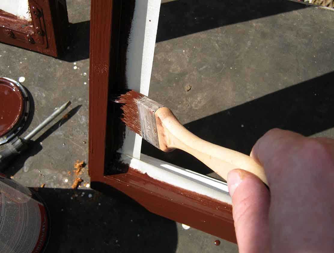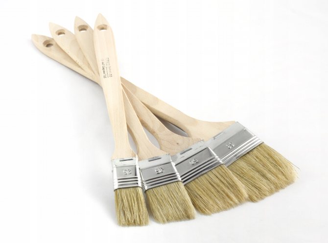 Noter! Il est préférable de travailler avec plusieurs 3 à 4 tailles de pinceaux. Pour couvrir une grande surface, utilisez une couche épaisse et pour les zones difficiles, une petite de quelques centimètres de large. Les cadres de fenêtre sont peints avec un pinceau plat, cela crée un trait plat et uniforme