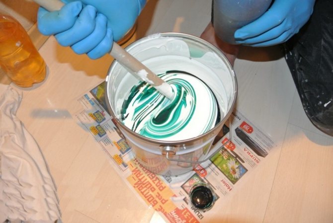 Ils commencent par teinter la peinture, vous devez immédiatement préparer la composition pour toute la quantité de travail, puis il sera difficile d'obtenir une teinte identique. Les travaux de l'extérieur ne peuvent avoir lieu qu'à des températures comprises entre +18 et +25 degrés. Sinon, la couche de peinture séchera de manière inégale et l'effet sera maculé.