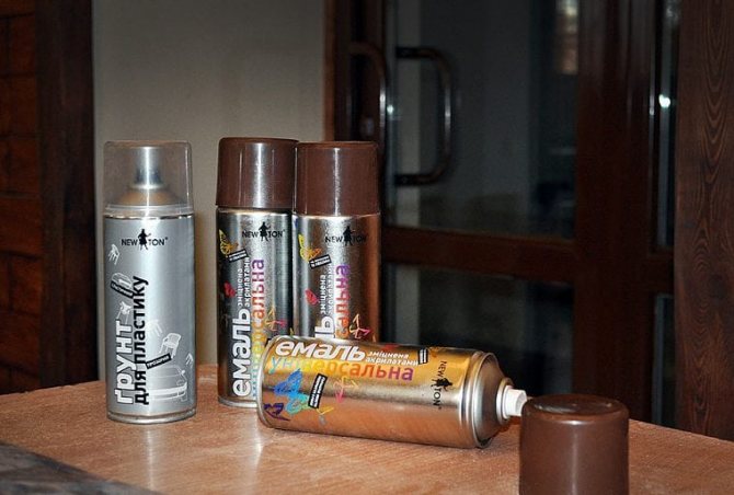 S'il n'y a pas de pistolet de pulvérisation, vous pouvez peindre les fenêtres avec un pinceau avec une largeur pour le cadre. Il y a des peintures dans les bombes aérosols, vous n'avez pas besoin d'acheter un vaporisateur pour elles, elles font également un bon travail de pulvérisation de la substance uniformément.