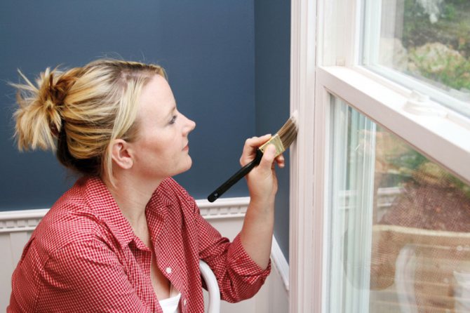 Parmi les avantages de la peinture des fenêtres, on peut noter que la couche résultante fermera les défauts existants, elle peut être facilement lavée après. Il sera possible d'effectuer une correction supplémentaire du revêtement rapidement, il suffit de retoucher un tel défaut. Le processus est simple à réaliser, vous pouvez le gérer vous-même.
