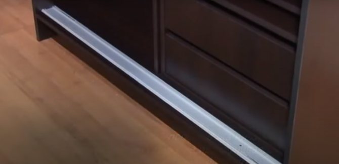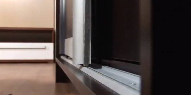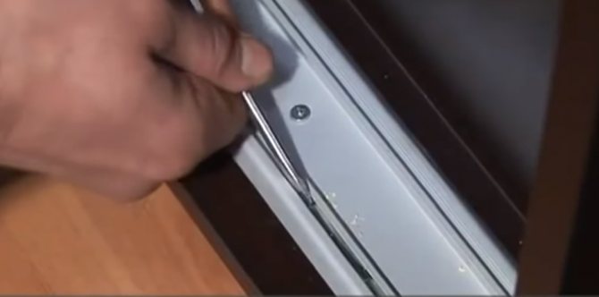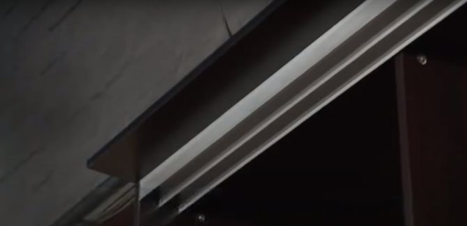 - Le cavalier est placé à l'intérieur de la niche. La prochaine étape consiste à réparer le guide. Le même nombre d'éléments est monté pour le sol. Il est souhaitable qu'il y ait un élément en caoutchouc sous le rail qui puisse amortir le bruit pendant le fonctionnement. La conception sera sûre.