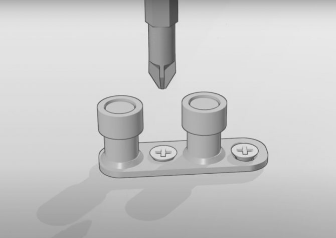 Il est temps de mettre en place, maintenant nous éliminons l'espace entre le déflecteur et le rouleau inférieur. Il y a un contrecoup entre ces éléments. Pour régler cette zone, placez la lame d'un tournevis à tête plate à l'extrémité de la plaque de roue (en face de la fente elliptique).