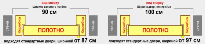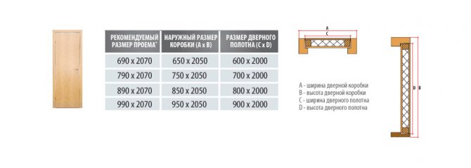 Le tableau montre les dimensions des portes que l'on trouve le plus souvent en vente dans les quincailleries et sur les marchés. Cependant, il existe également des modèles non standard qui nécessitent des calculs supplémentaires. En cas de doute, vous devez contacter les professionnels qui vous aideront à effectuer les calculs sans erreur.