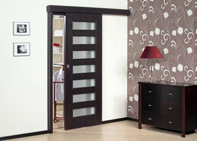 Les portes coulissantes confortables remplacent aujourd'hui les portes battantes standard. Ils s'écartent souvent le long du mur. Les produits coulissants peuvent être fabriqués dans différents matériaux: bois massif, panneaux MDF collés, panneaux de particules, profilés en aluminium avec remplissage translucide. Les structures peuvent également être de type léger, par exemple en tissu ou en papier de riz, qui sont tirées sur un cadre ou un cadre.