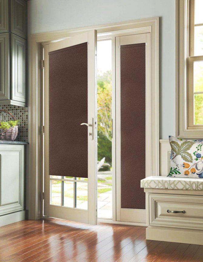 - Commodité lors de l'utilisation d'une porte de balcon. Chaque fois que vous visitez la loggia, les rideaux doivent être écartés, puis redressés. Ceci n'est pas pratique et le rideau s'use rapidement. Les stores attachés au vantail de la porte résolvent ce problème.