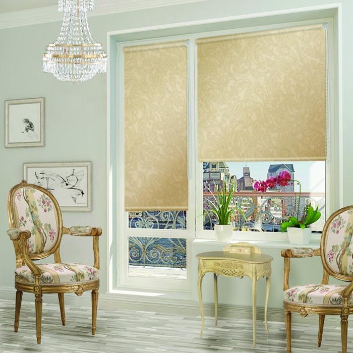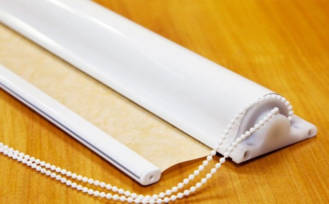 Ce type de store est fixé directement au cadre de la fenêtre, avec un vantail séparé pour chaque châssis. En position assemblée, ils sont enroulés sur un arbre et en position ouverte, ils ferment hermétiquement le verre. La gestion est effectuée à l'aide d'une chaîne décorative. Le tissu à partir duquel les stores enrouleurs sont fabriqués peut être dense et pas très, uni et avec un motif.