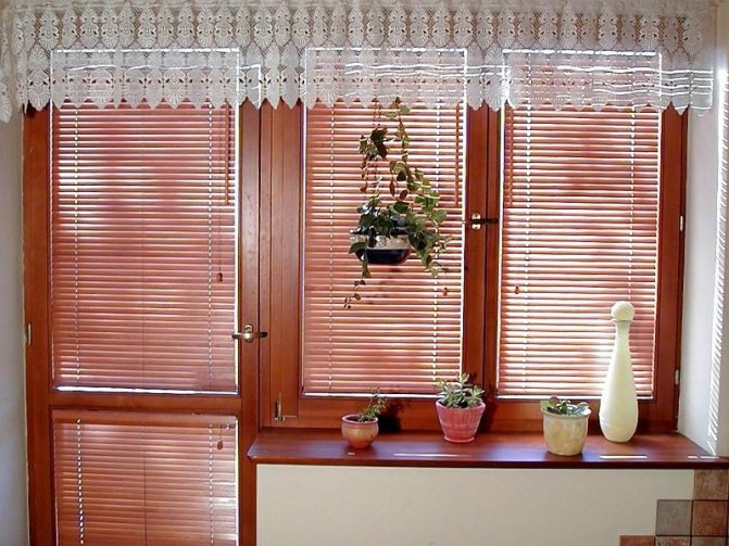 Pour les fenêtres en bois, il est conseillé de sélectionner des structures avec des lamelles fabriquées à partir de matériaux naturels, par exemple du bois, du bambou ou du tissu.