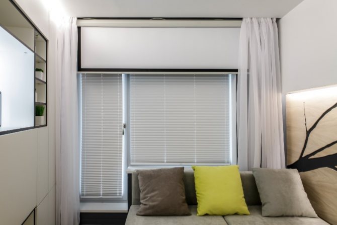 La toile a une couleur et un motif différents, mais rarement l'ouverture est faite uniquement avec des stores à enrouleur. Des rideaux fins sont sélectionnés pour eux.