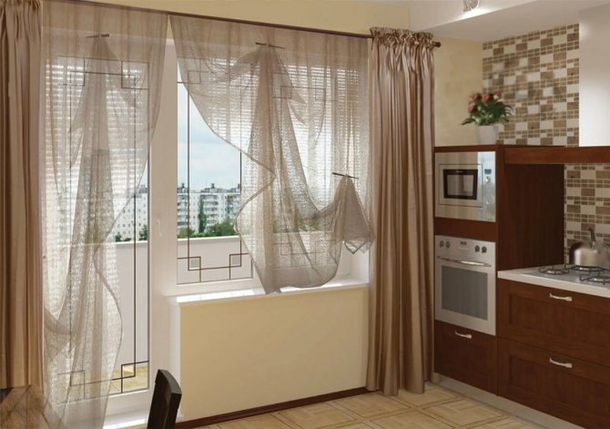 Important. Les rideaux de balcon se composent toujours de deux bandes. Ils convergent en face de la poignée de porte - cela permet de sortir sur le balcon sans déplacer le rideau le long de la corniche sur le côté.