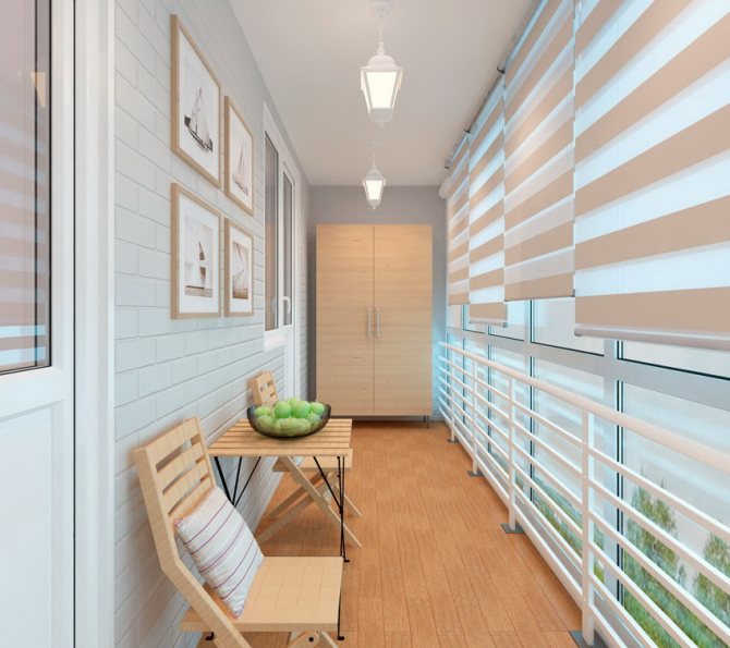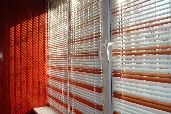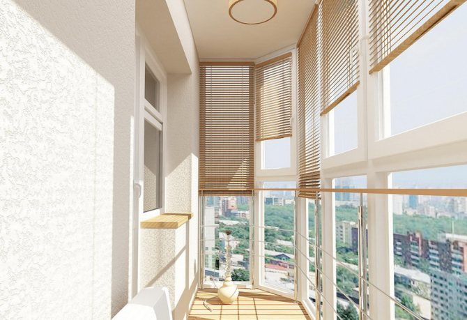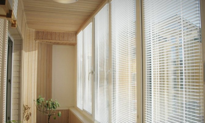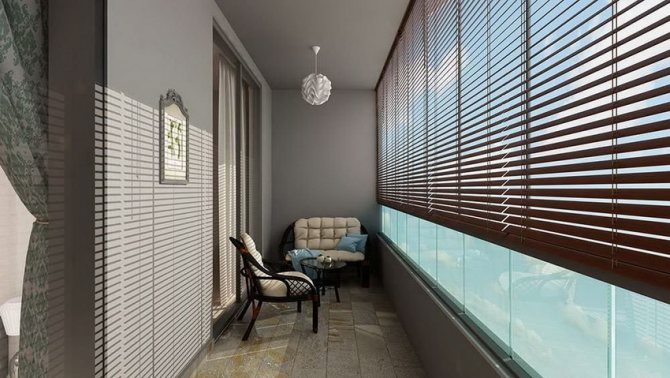 Les stores horizontaux, bien qu'ils aient l'air soignés, ne sont pas en mesure de créer une atmosphère chaleureuse sur le balcon. Ils conviennent exclusivement aux espaces minimalistes.