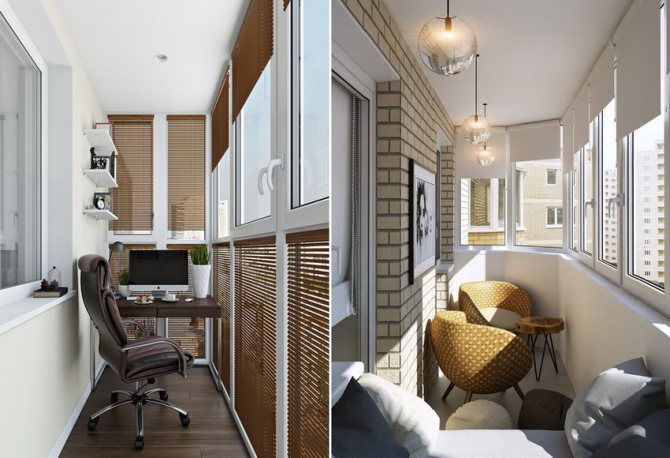 Les stores ne peuvent être installés dans une porte de balcon que si le balcon ou la loggia est doté d'une isolation et d'un vitrage de haute qualité. Augmenter ou fermer une telle cloison augmentera l'espace global de l'espace de vie. Le plus souvent, le balcon est combiné avec une cuisine, un salon ou une chambre. Dans cet espace, vous pouvez équiper un coin repos, une salle à manger compacte, un lieu de travail.