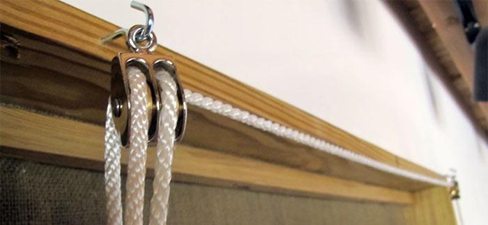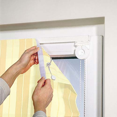 les rideaux sont commandés par une chaîne ou un mécanisme à ressort. Dans le second cas, le support est installé sur la barre inférieure. Il suffit de tirer le rideau vers le bas et de le fixer à un niveau qui assure l'obscurcissement souhaité de la pièce. Afin de soulever les volets roulants, leur toile doit être abaissée pour déverrouiller le système et relâchée. - Souvent, pour fixer la structure parallèlement à la fenêtre, des guides avec un crochet sont utilisés.