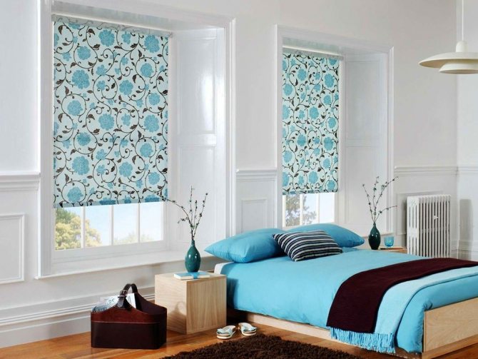 La décoration des fenêtres avec des stores enrouleurs est possible dans de nombreux modèles. Tout d'abord, c'est un grand choix de densité et de couleurs de tissus. La palette de rideaux doit être combinée avec tout le décor de la pièce dans le cas de la création d'une seule composition. Si vous souhaitez vous concentrer sur l'ouverture, le choix est arrêté sur des couleurs vives et contrastées.