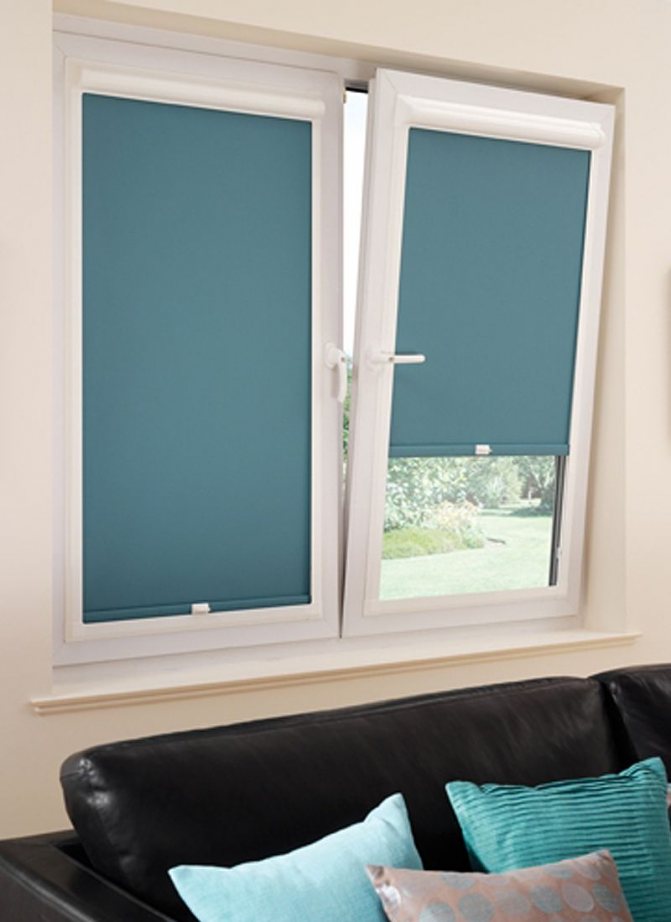 L'installation d'un store enrouleur directement sur le châssis augmente la fonctionnalité des fenêtres. Le tissu n'a pas besoin d'être poussé ou soulevé pour ouvrir les portes. Même des mini modèles sont fabriqués, avec lesquels ils recouvrent les plus petits vitres.