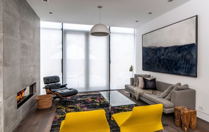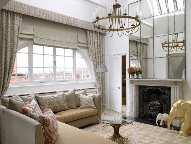 Les stores romains sont bons car ils combinent la fonctionnalité des stores et la sophistication des rideaux. Cela n'empêche pas de les combiner avec des rideaux ordinaires lorsqu'il s'agit de décorer une fenêtre dans le salon. Le choix du type de toile dépend de la conception de cette pièce. La version classique est constituée de rideaux épais unis en lin, tapisserie, jacquard. Lorsque vous choisissez un matériau avec une impression, vous devez vous rappeler que sa nuance doit répéter la couleur de la décoration dans le salon. Des stores romains doubles sont souvent utilisés pour décorer les fenêtres de cette pièce. Ce sont des filtres de lumière avec des toiles de densités différentes, souvent de couleur contrastée. L'un d'eux joue le rôle du tulle, le second - des rideaux.