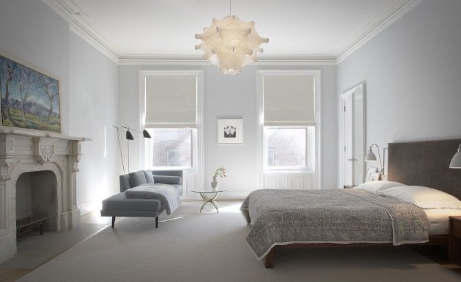 - la pièce qui doit créer une atmosphère calme et chaleureuse. Il est préférable de choisir des stores romains pour cette pièce dans les mêmes tons calmes. La toile peut chevaucher la texture ou la couleur du rembourrage des meubles, d'autres textiles de la pièce. Pour créer la bonne atmosphère pour un sommeil sain, il est préférable de choisir des rideaux en matériau épais. La meilleure option est le tissu occultant. Les rideaux épais et opaques se marient bien avec du tulle clair.