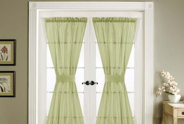 Souvent, les mini tringles à rideaux sont utilisées non seulement pour décorer les fenêtres en plastique, mais sont également fixées aux portes intérieures ou d'entrée avec vitrage. Cela vous permet de couvrir la partie transparente de la porte avec un rideau et d'ajouter de l'intimité à la pièce. De plus, cette conception de porte confère à l'intérieur un style et un charme particuliers.