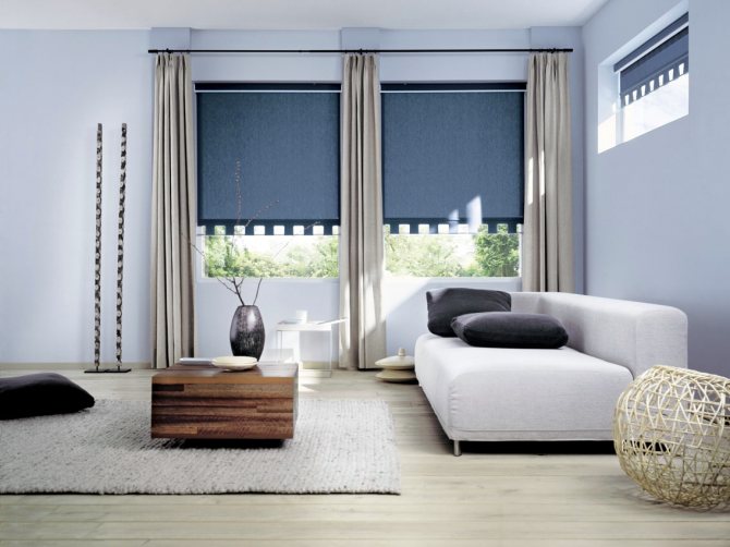 - Si vous avez l'intention d'utiliser une combinaison de deux types de rideaux, par exemple romains et classiques, le choix doit porter sur la méthode de fixation au cadre de la fenêtre.